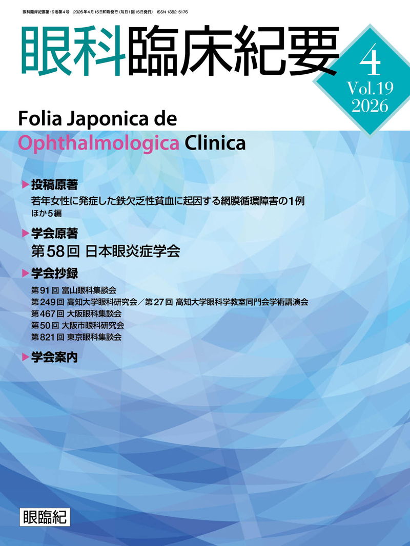 最新号第19巻第4号を掲載致しました。 2026年4月15日2026年4月10日 by ササキ 眼科臨床紀要最新号「2026年 第19巻 第4号」を掲載致しました。 目次は、こちらからご覧下さい。 https://ganrinki.net/back_number/606